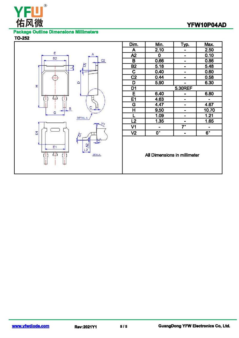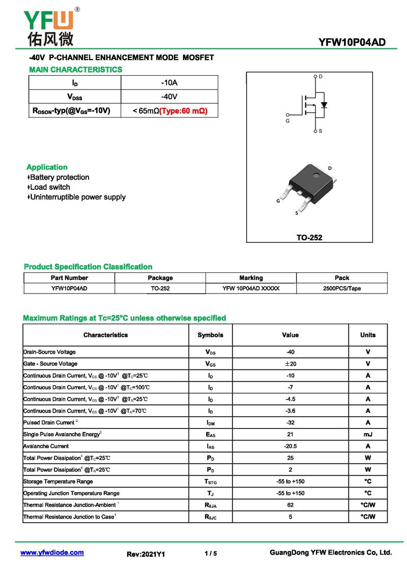場效應管YFW10P04AD 規格書_價格_PDF手冊-廣東佑風微原廠YFW10P04AD TO-252_(YFW佑風微)品牌
