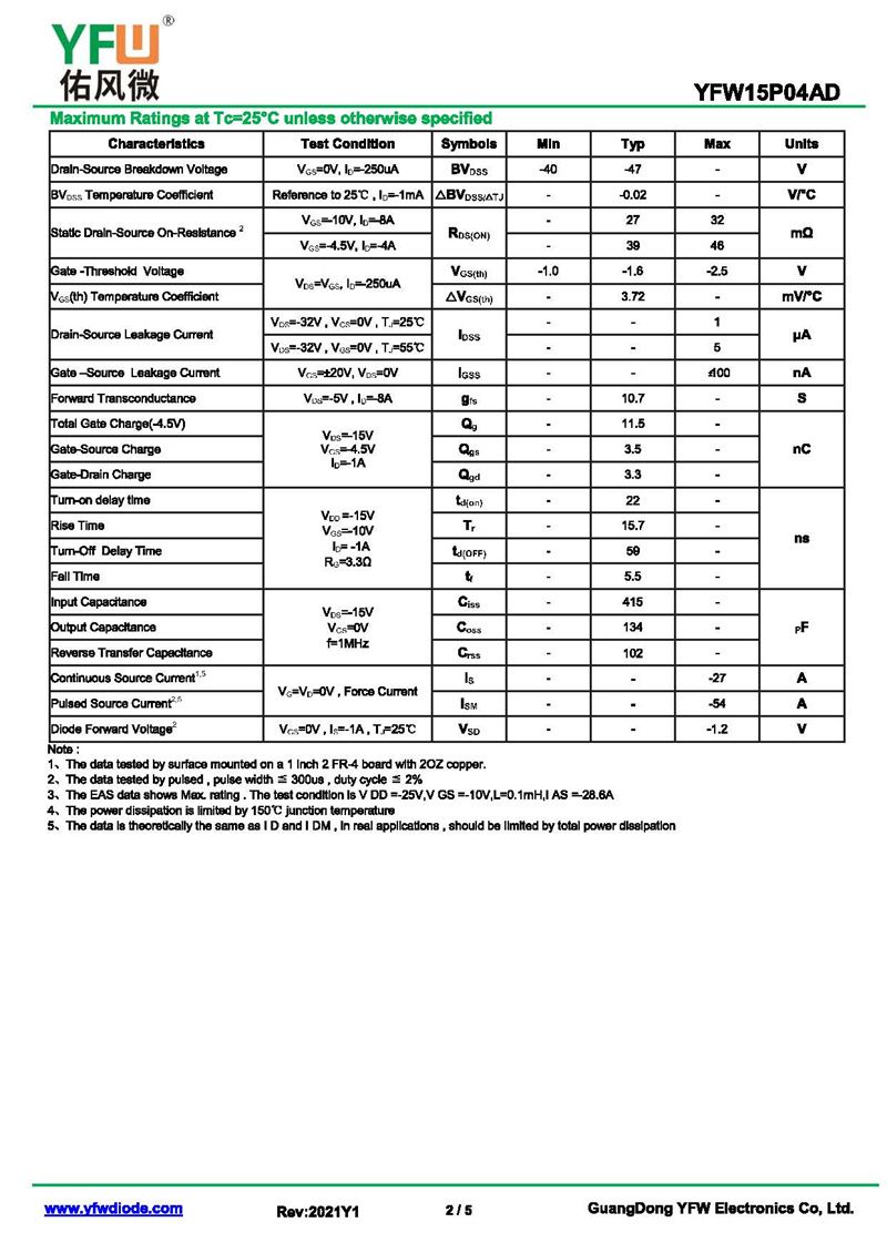 場效應管YFW15P04AD 規格書_價格_PDF手冊-廣東佑風微原廠YFW15P04AD TO-252_(YFW佑風微)品牌