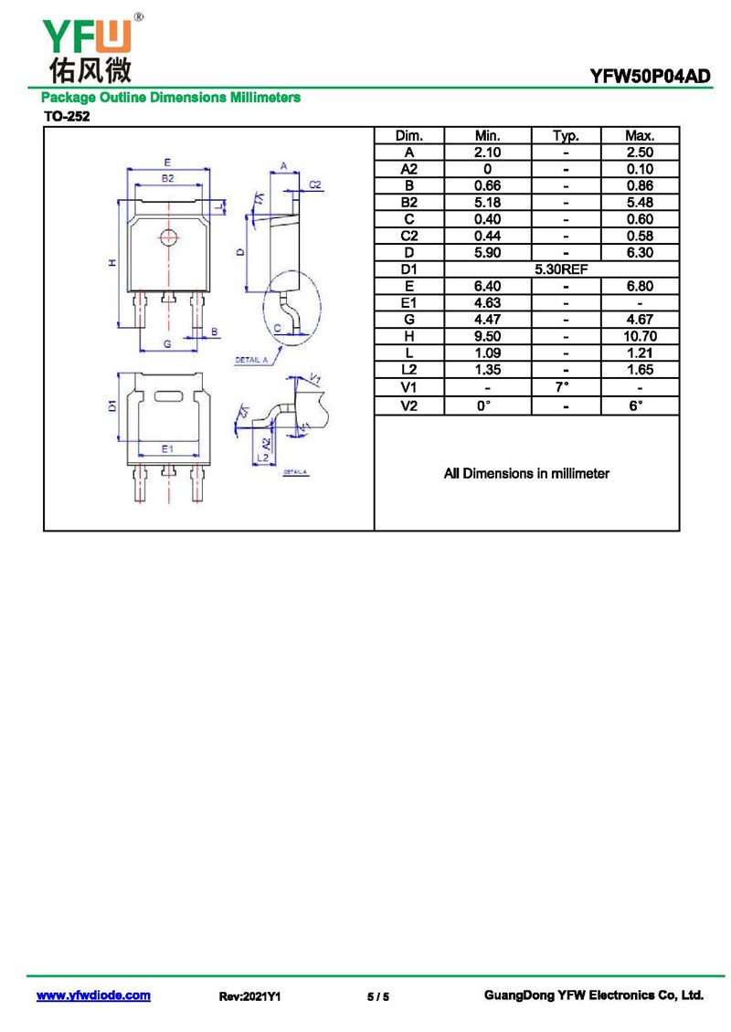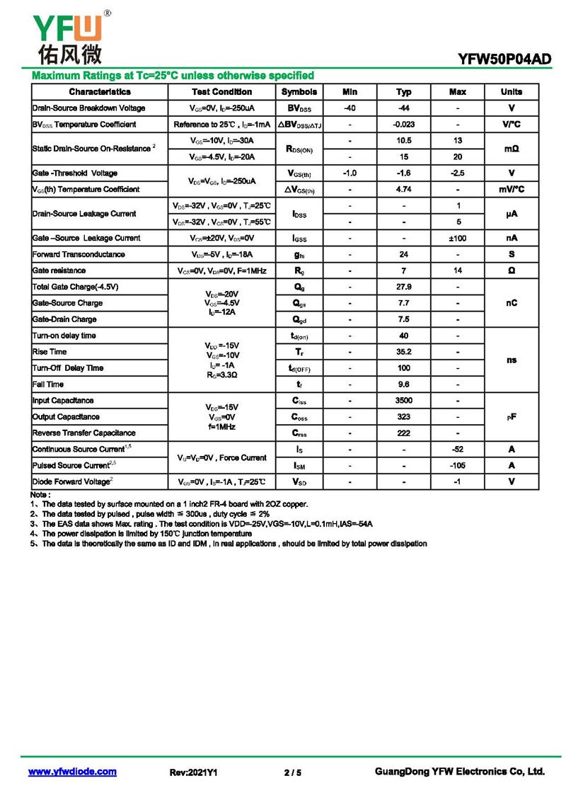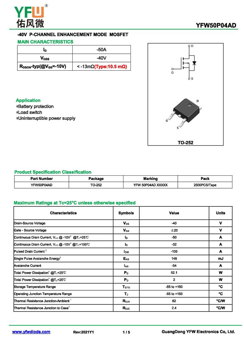 場效應管YFW50P04AD 規格書_價格_PDF手冊-廣東佑風微原廠YFW50P04AD TO-252_(YFW佑風微)品牌