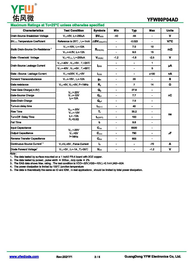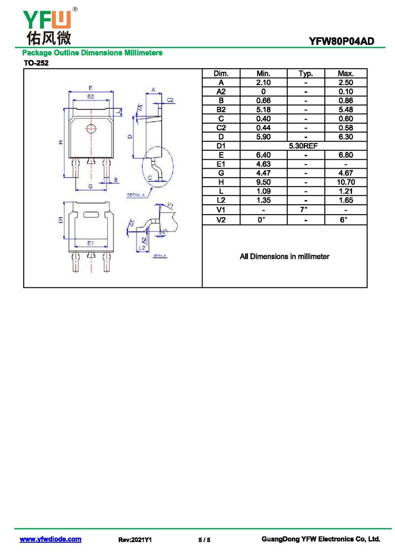 場效應管YFW80P04AD 規格書_價格_PDF手冊-廣東佑風微原廠YFW80P04AD TO-252_(YFW佑風微)品牌