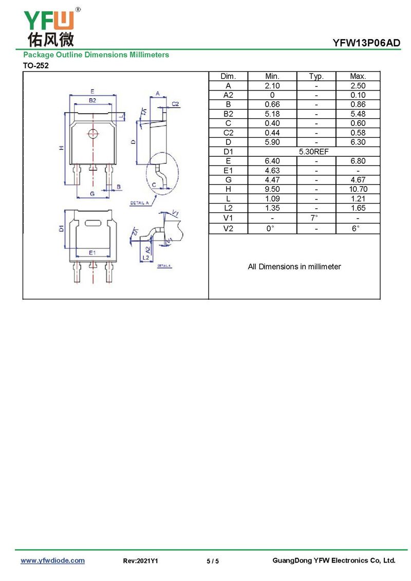 場效應管YFW13P06AD 規格書_價格_PDF手冊-廣東佑風微原廠YFW13P06AD TO-252_(YFW佑風微)品牌