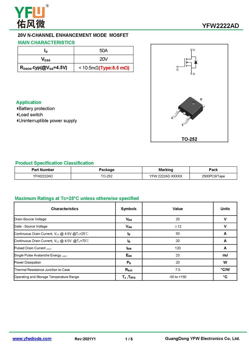 場效應管YFW2222AD 規格書_價格_PDF手冊-廣東佑風微原廠YFW2222AD TO-252_(YFW佑風微)品牌