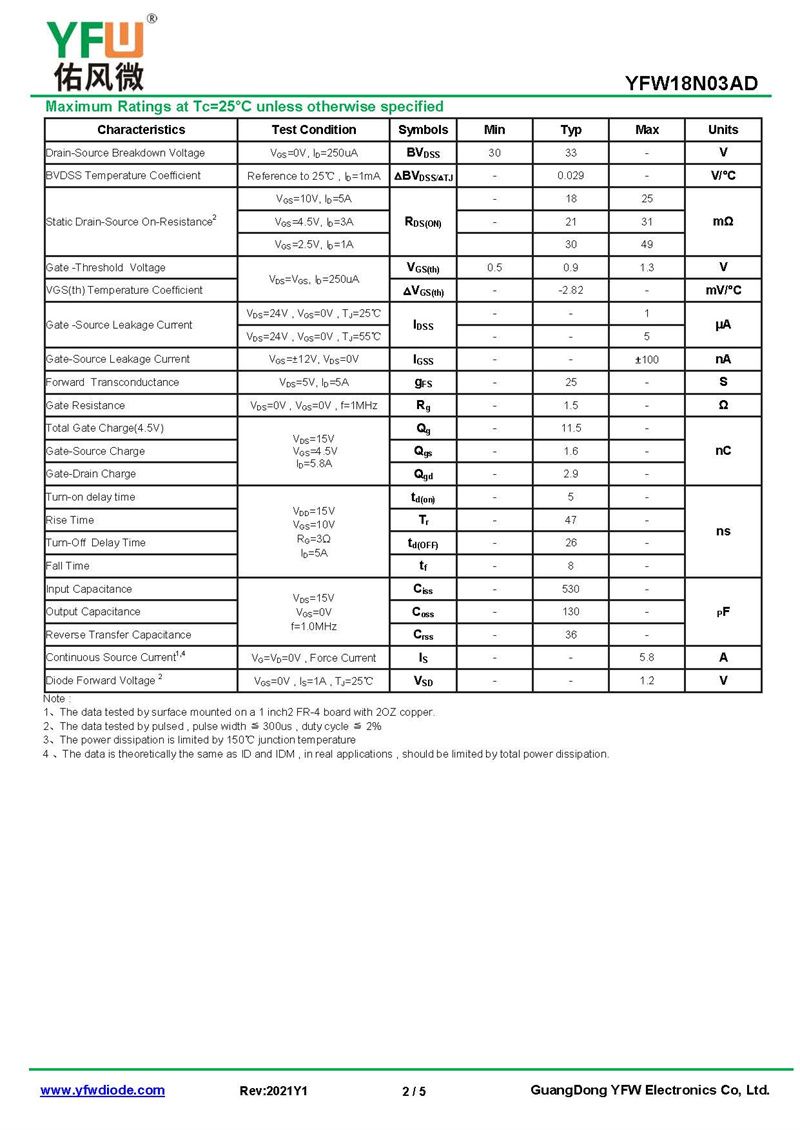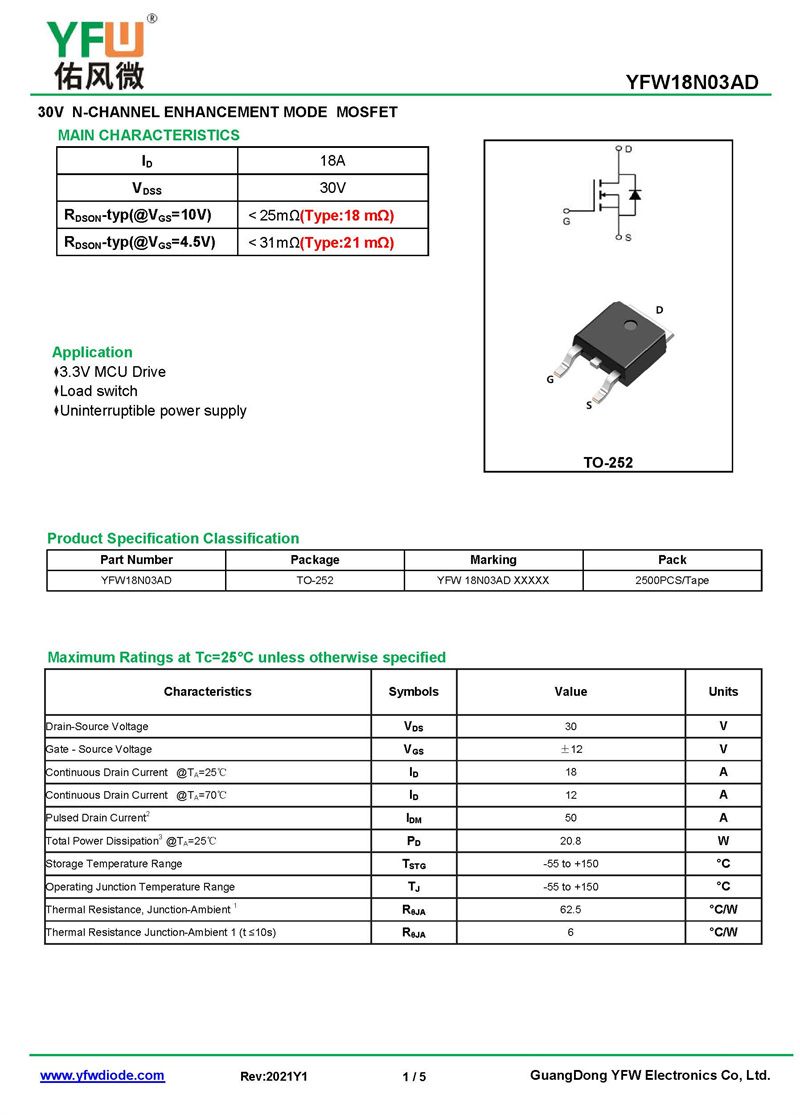 場(chǎng)效應(yīng)管YFW18N03AD 規(guī)格書_價(jià)格_PDF手冊(cè)-廣東佑風(fēng)微原廠YFW18N03AD TO-252_(YFW佑風(fēng)微)品牌
