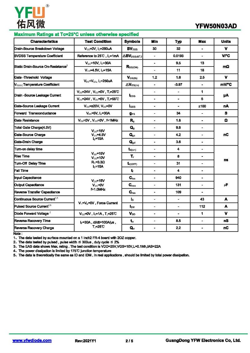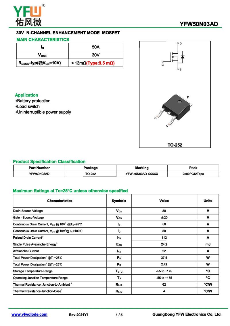 場(chǎng)效應(yīng)管YFW50N03AD 規(guī)格書_價(jià)格_PDF手冊(cè)-廣東佑風(fēng)微原廠YFW50N03AD TO-252_(YFW佑風(fēng)微)品牌
