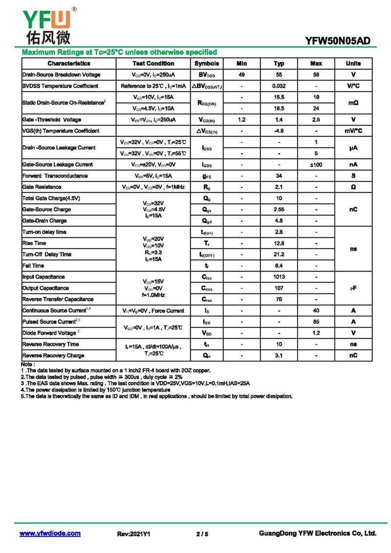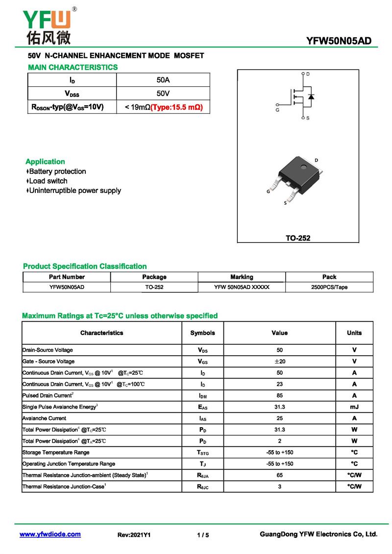 場(chǎng)效應(yīng)管YFW50N05AD 規(guī)格書_價(jià)格_PDF手冊(cè)-廣東佑風(fēng)微原廠YFW50N05AD TO-252_(YFW佑風(fēng)微)品牌