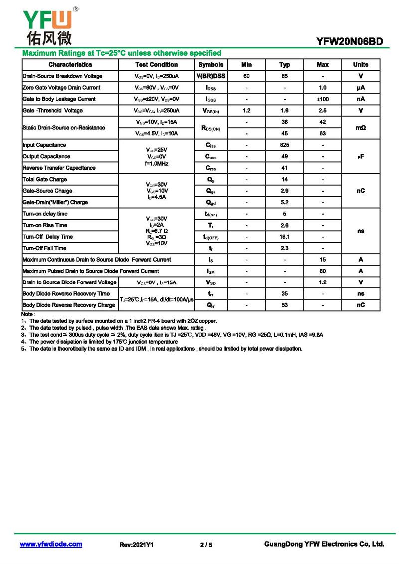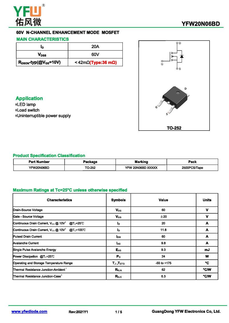 場效應管YFW20N06BD 規格書_價格_PDF手冊-廣東佑風微原廠YFW20N06BD TO-252_(YFW佑風微)品牌