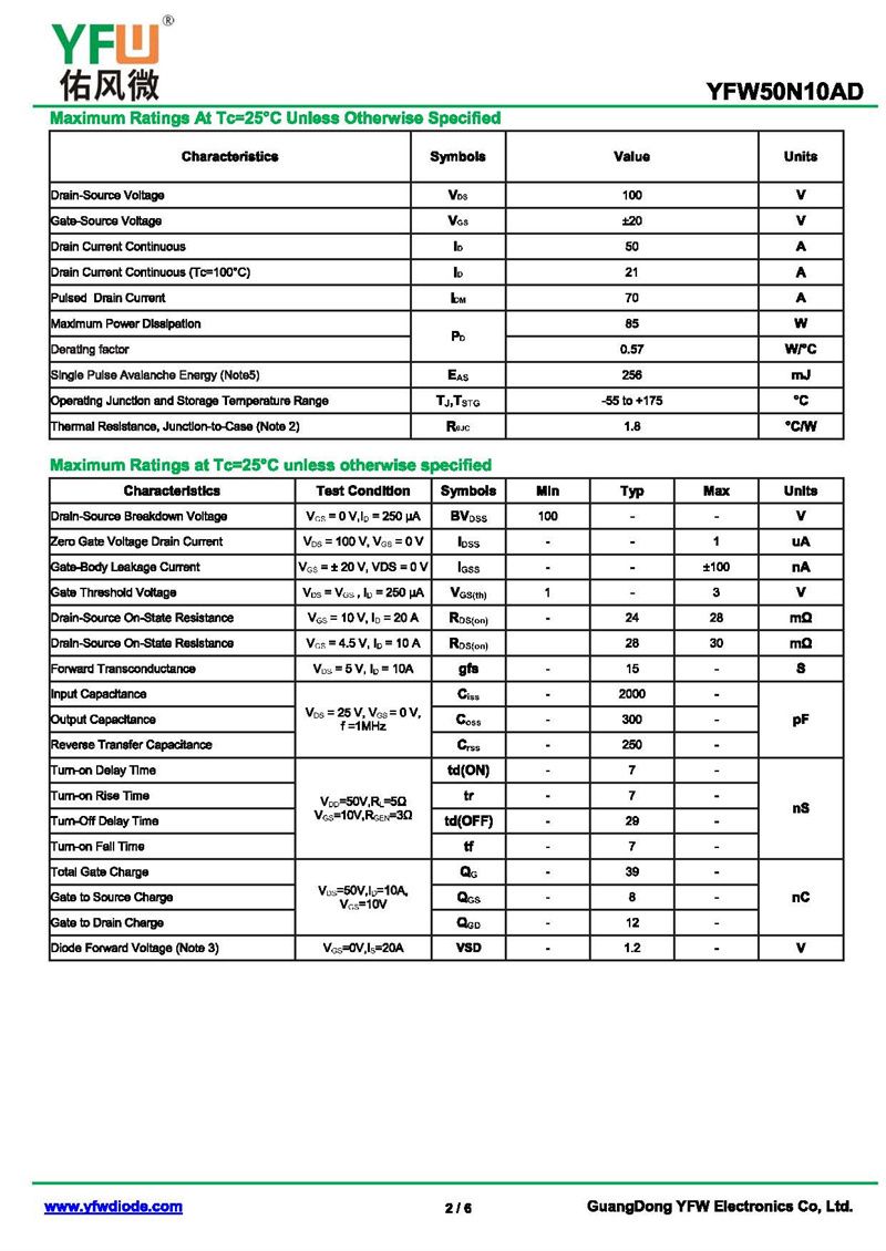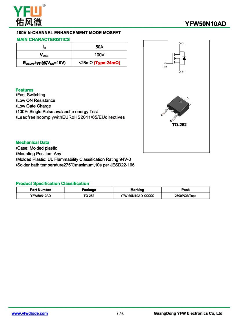 場效應(yīng)管YFW50N10AD 規(guī)格書_價(jià)格_PDF手冊-廣東佑風(fēng)微原廠YFW50N10AD TO-252_(YFW佑風(fēng)微)品牌