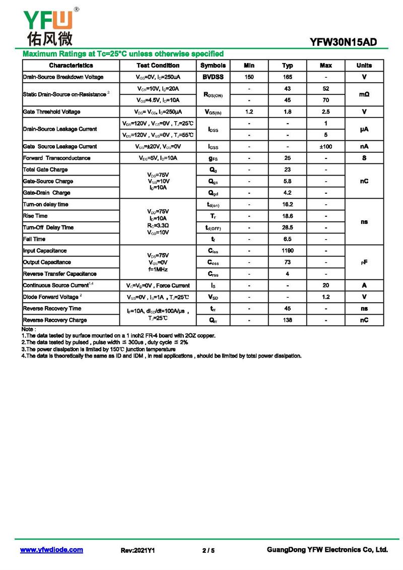 場效應(yīng)管YFW30N15AD 規(guī)格書_價(jià)格_PDF手冊-廣東佑風(fēng)微原廠YFW30N15AD TO-252_(YFW佑風(fēng)微)品牌
