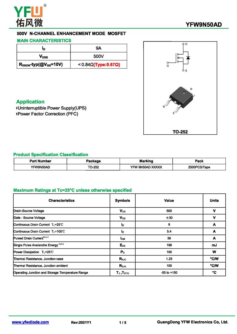 場(chǎng)效應(yīng)管YFW9N50AD 規(guī)格書_價(jià)格_PDF手冊(cè)-廣東佑風(fēng)微原廠YFW9N50AD TO-252_(YFW佑風(fēng)微)品牌