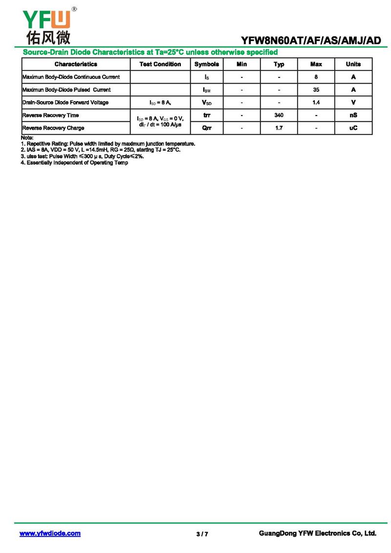 場(chǎng)效應(yīng)管YFW8N60AD 規(guī)格書(shū)_價(jià)格_PDF手冊(cè)-廣東佑風(fēng)微原廠YFW8N60AD TO-252_(YFW佑風(fēng)微)品牌