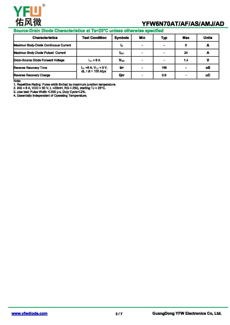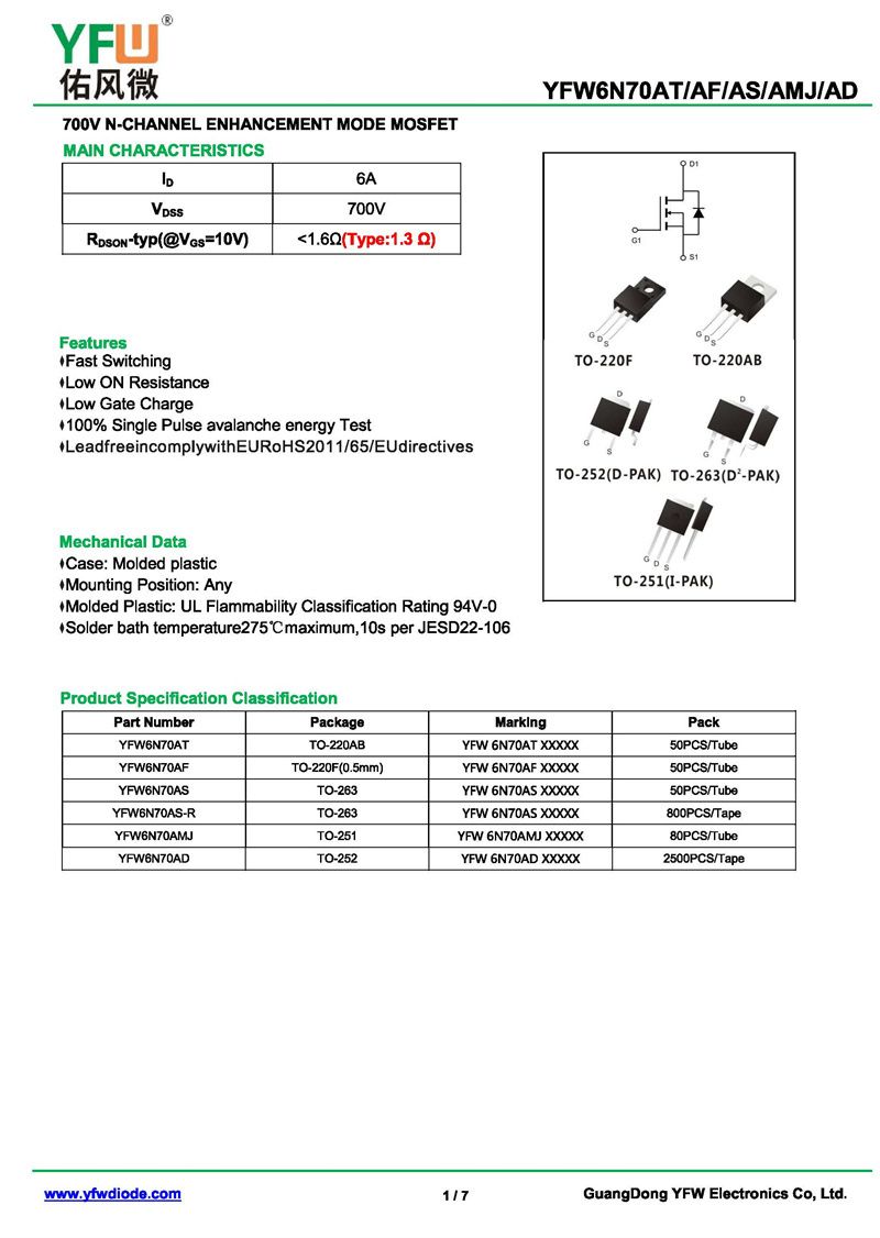 場(chǎng)效應(yīng)管YFW6N70AD 規(guī)格書_價(jià)格_PDF手冊(cè)-廣東佑風(fēng)微原廠YFW6N70AD TO-252_(YFW佑風(fēng)微)品牌