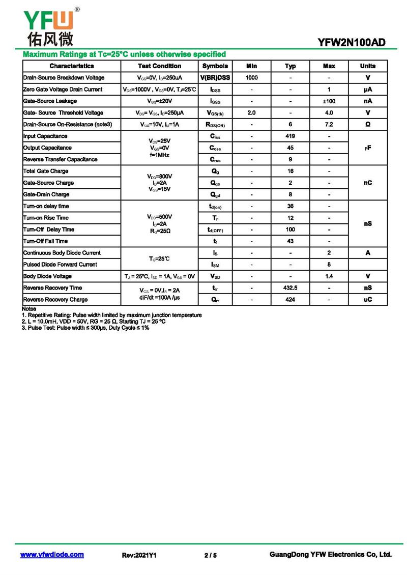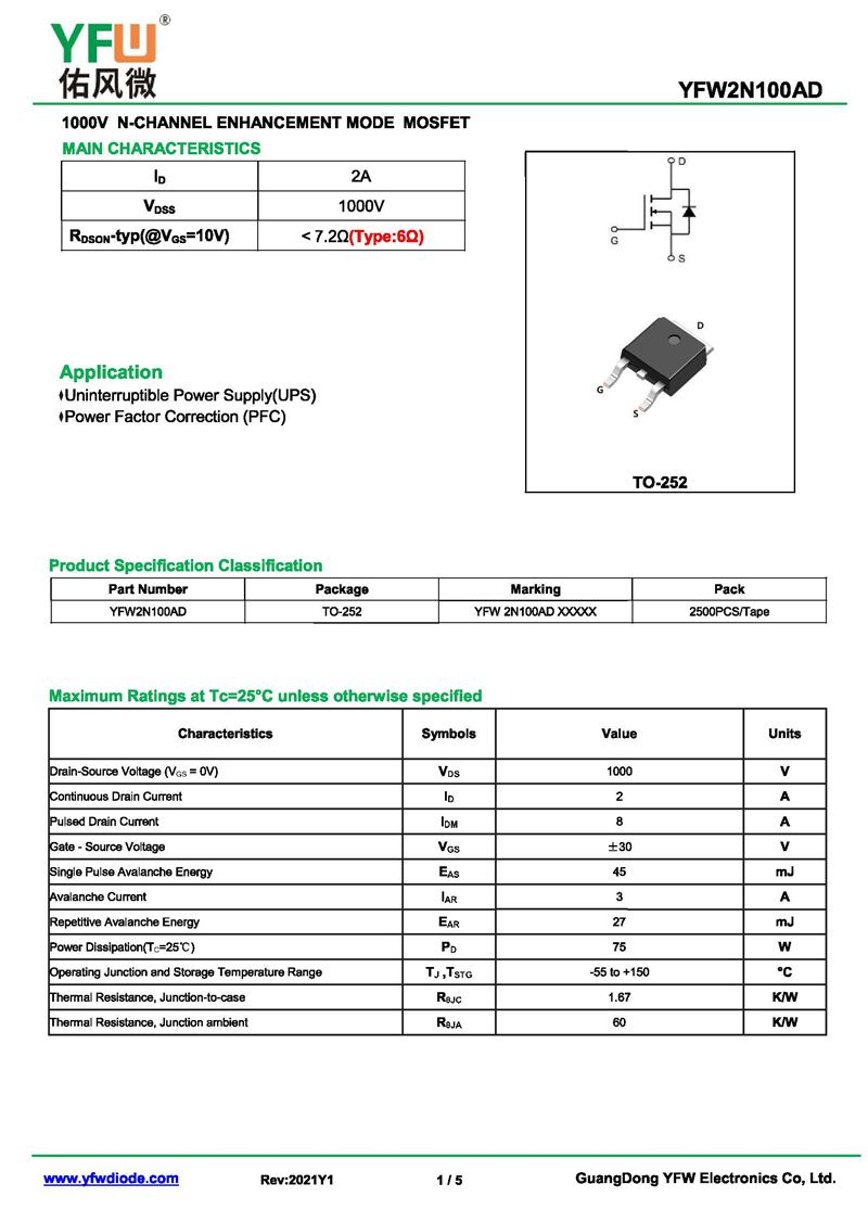 場(chǎng)效應(yīng)管YFW2N100AD 規(guī)格書(shū)_價(jià)格_PDF手冊(cè)-廣東佑風(fēng)微原廠YFW2N100AD TO-252_(YFW佑風(fēng)微)品牌