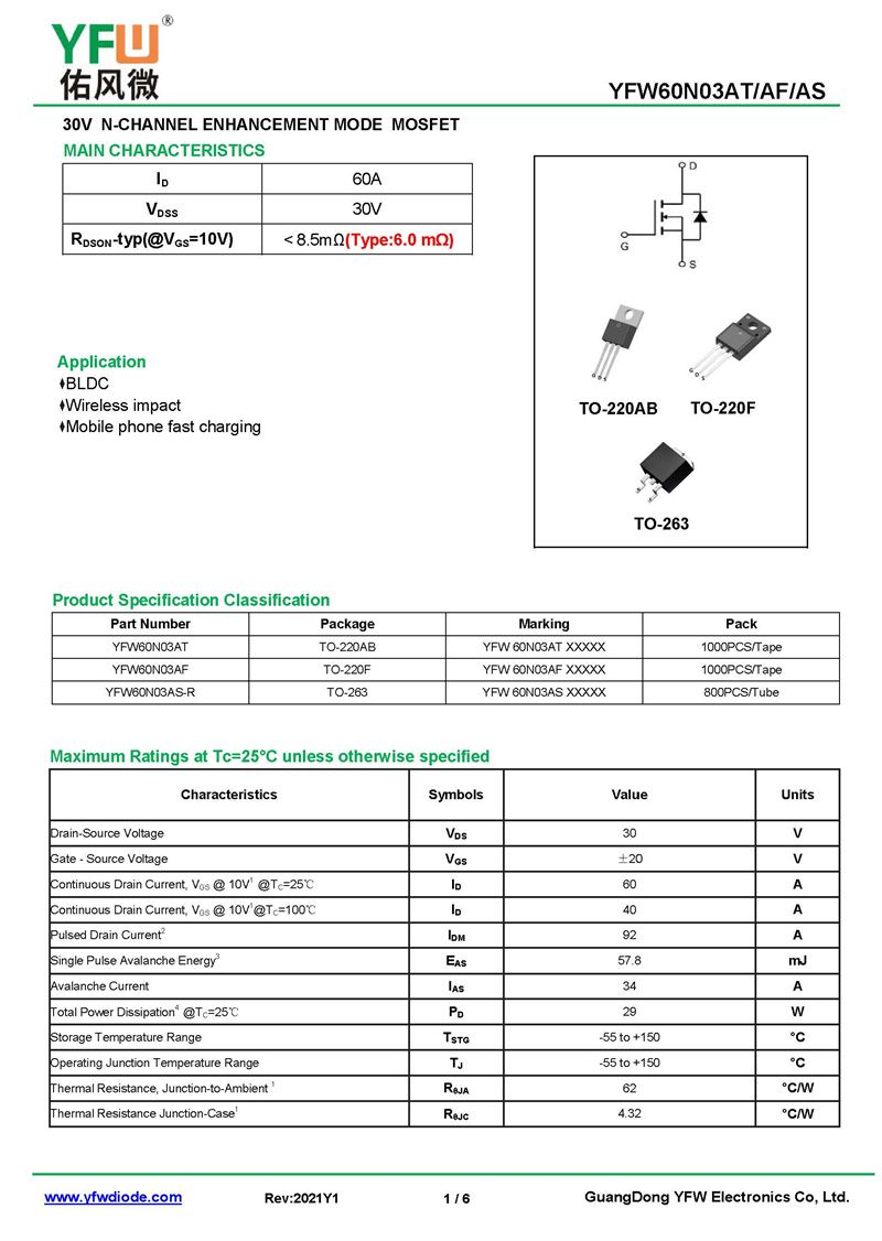 場(chǎng)效應(yīng)管YFW60N03AS 規(guī)格書_價(jià)格_PDF手冊(cè)-廣東佑風(fēng)微原廠YFW60N03AS TO-263_(YFW佑風(fēng)微)品牌