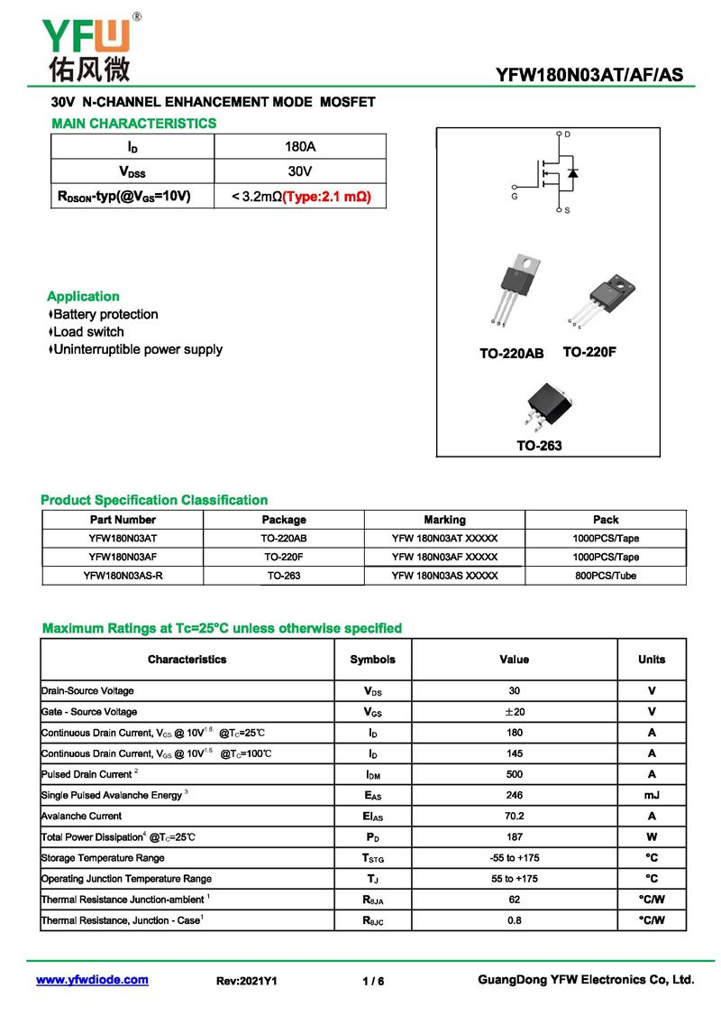 場(chǎng)效應(yīng)管YFW180N03AS-R 規(guī)格書_價(jià)格_PDF手冊(cè)-廣東佑風(fēng)微原廠YFW180N03AS-R TO-263_(YFW佑風(fēng)微)品牌