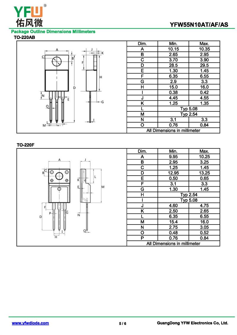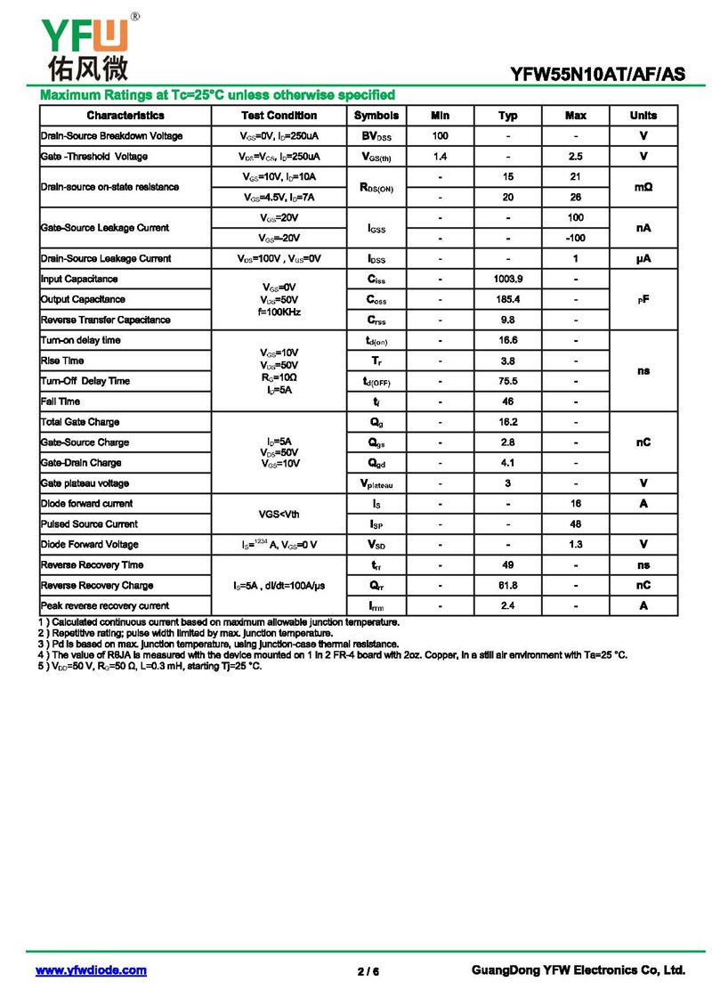 場效應管YFW55N10AS-R 規格書_價格_PDF手冊-廣東佑風微原廠YFW55N10AS-RTO-263_(YFW佑風微)品牌