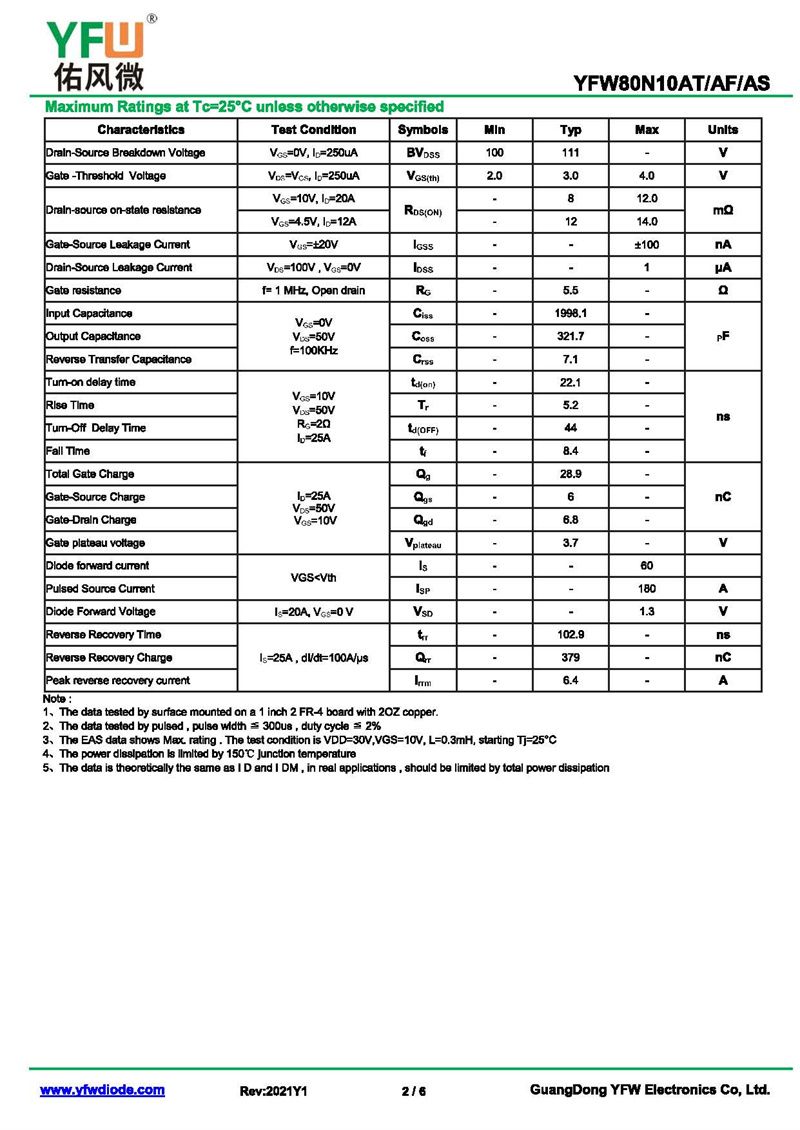 場效應(yīng)管YFW80N10AS-R 規(guī)格書_價格_PDF手冊-廣東佑風(fēng)微原廠YFW80N10AS-R TO-263_(YFW佑風(fēng)微)品牌