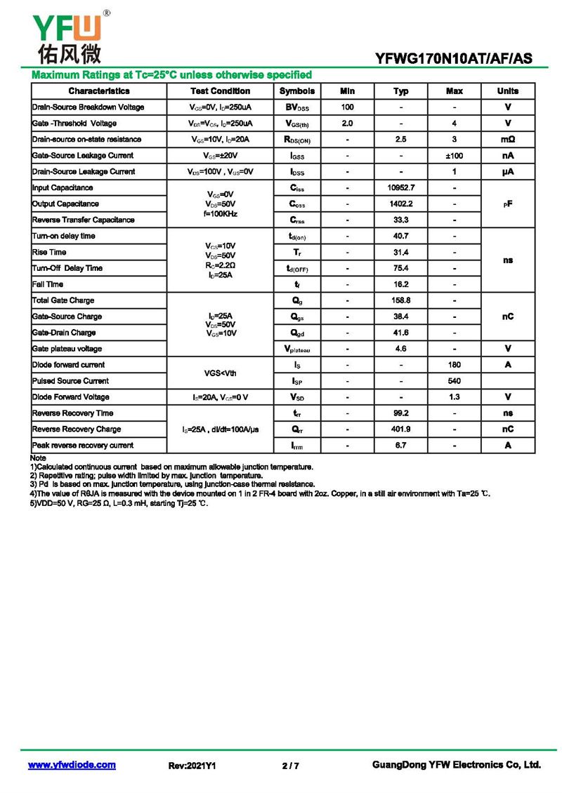 場效應管YFWG170N10AS-R 規格書_價格_PDF手冊-廣東佑風微原廠YFWG170N10AS-R TO-263_(YFW佑風微)品牌