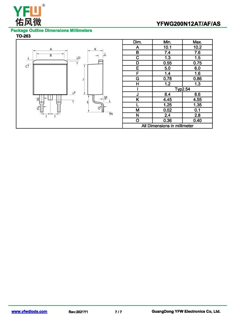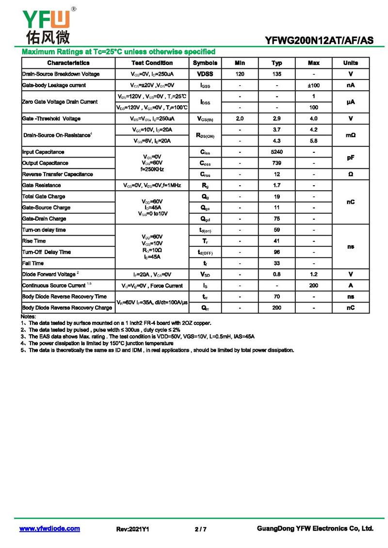 場效應管YFWG200N12AS-R 規格書_價格_PDF手冊-廣東佑風微原廠YFWG200N12AS-R TO-263_(YFW佑風微)品牌