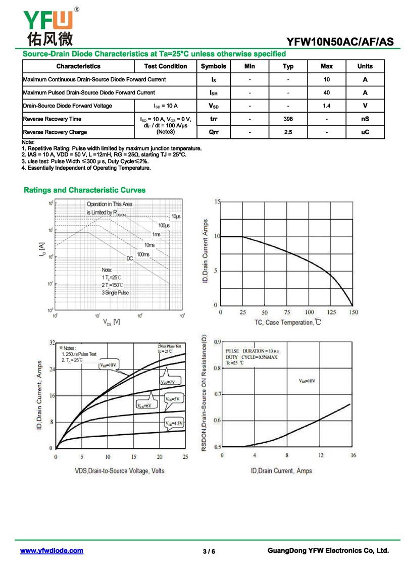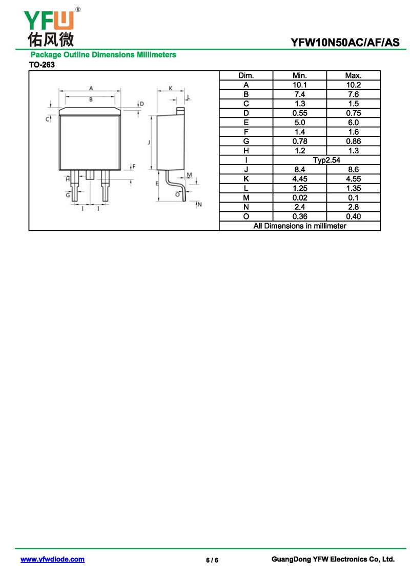 場效應管YFW10N50AS-R 規格書_價格_PDF手冊-廣東佑風微原廠YFW10N50AS-R TO-263_(YFW佑風微)品牌