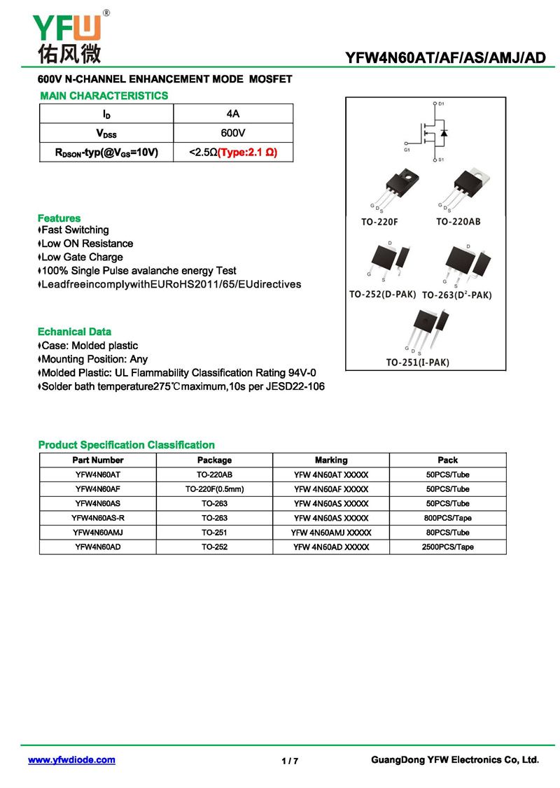 場效應(yīng)管YFW4N60AS-R 規(guī)格書_價格_PDF手冊-廣東佑風(fēng)微原廠YFW4N60AS-R TO-263_(YFW佑風(fēng)微)品牌