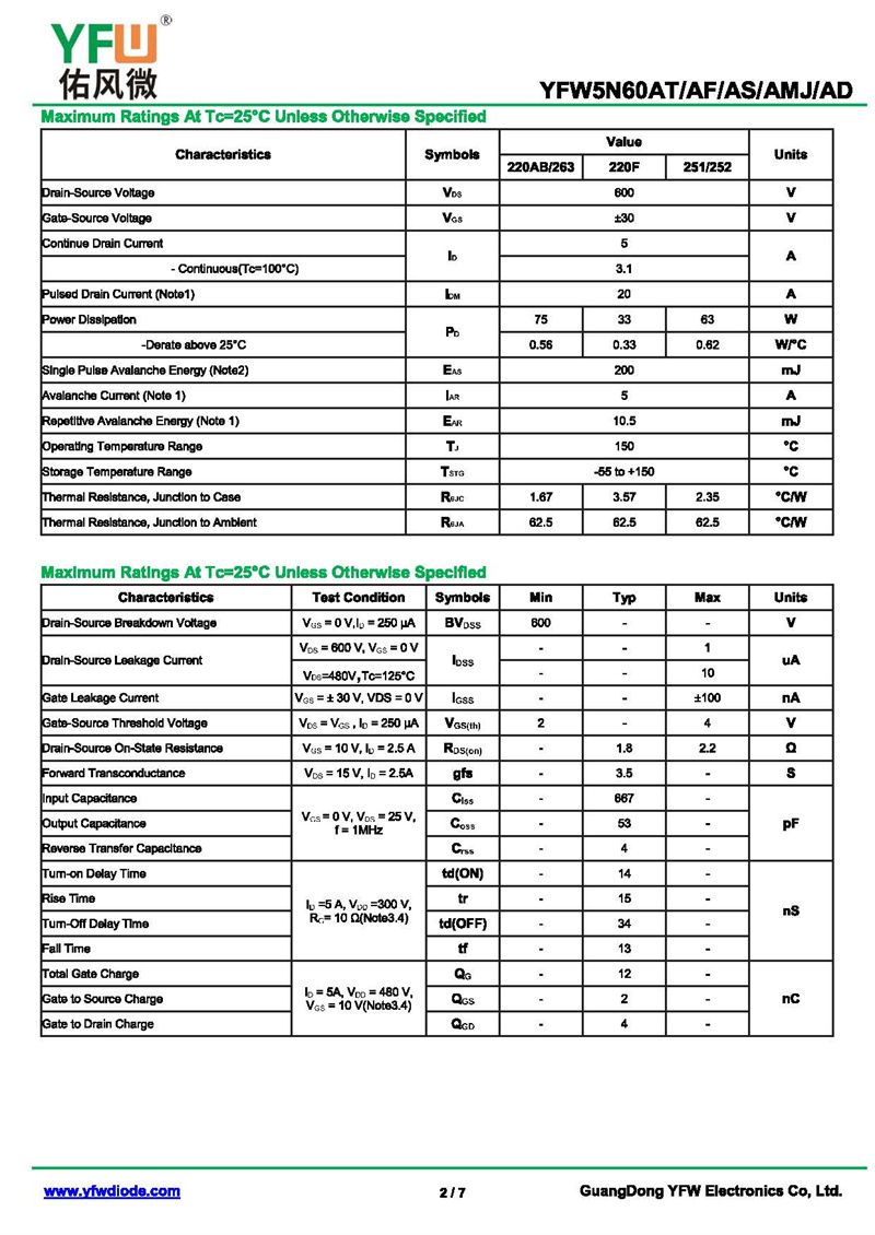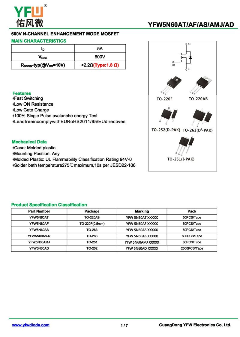 場效應(yīng)管YFW5N60AS-R 規(guī)格書_價(jià)格_PDF手冊-廣東佑風(fēng)微原廠YFW5N60AS-R TO-263_(YFW佑風(fēng)微)品牌