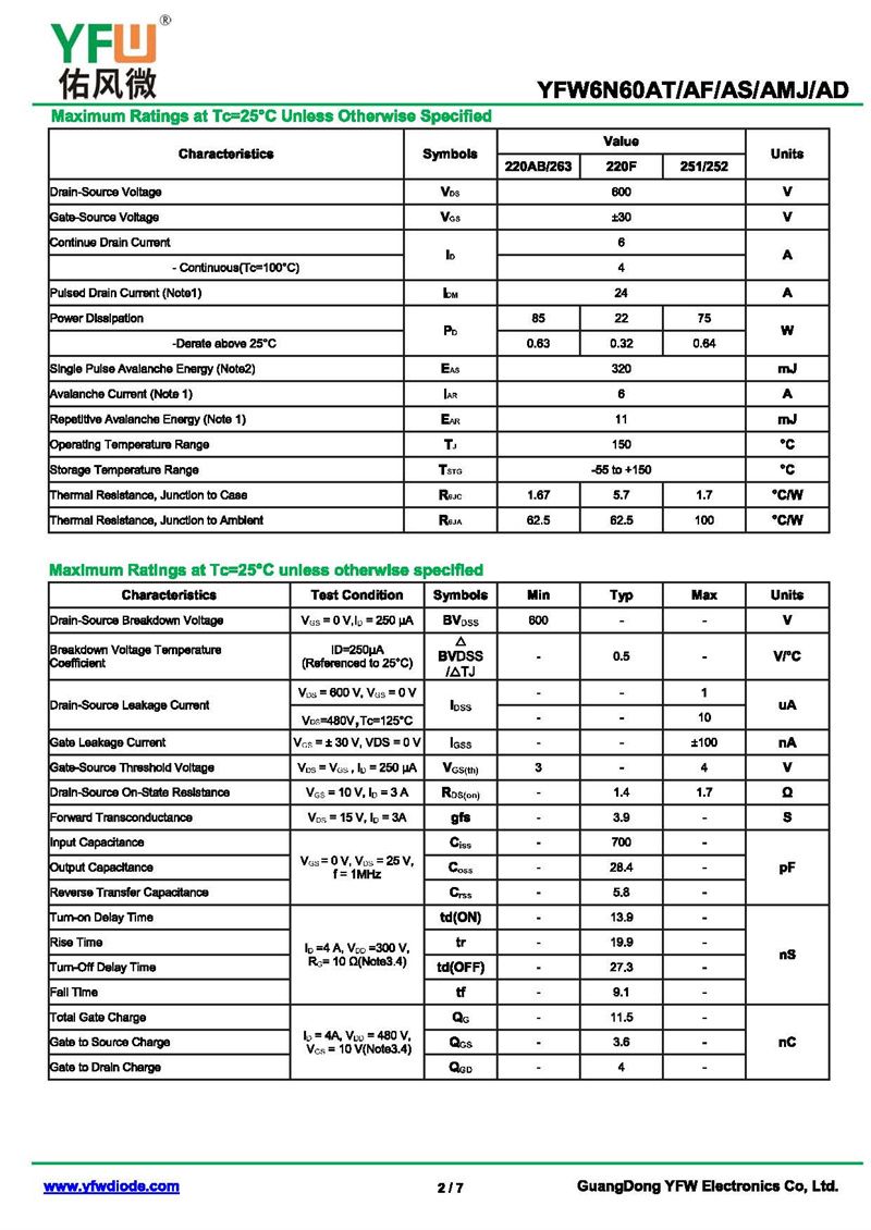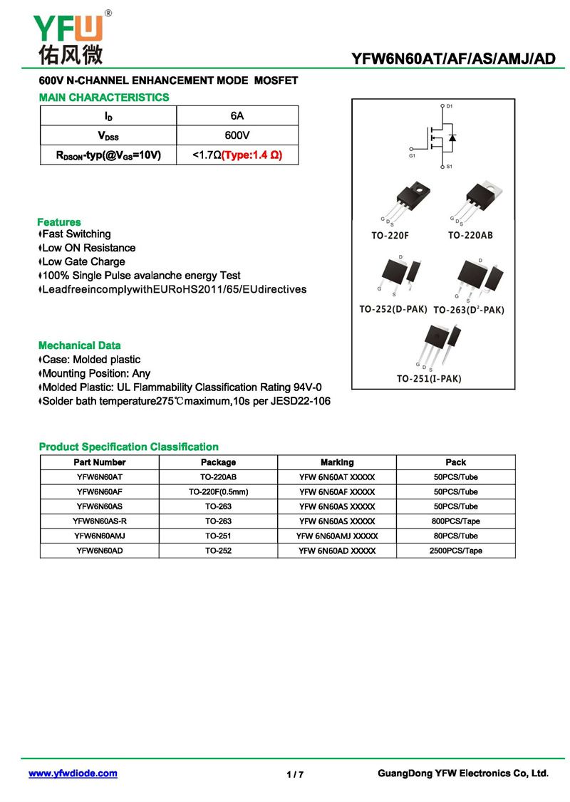 場效應(yīng)管YFW6N60AS-R 規(guī)格書_價格_PDF手冊-廣東佑風(fēng)微原廠YFW6N60AS-R TO-263_(YFW佑風(fēng)微)品牌