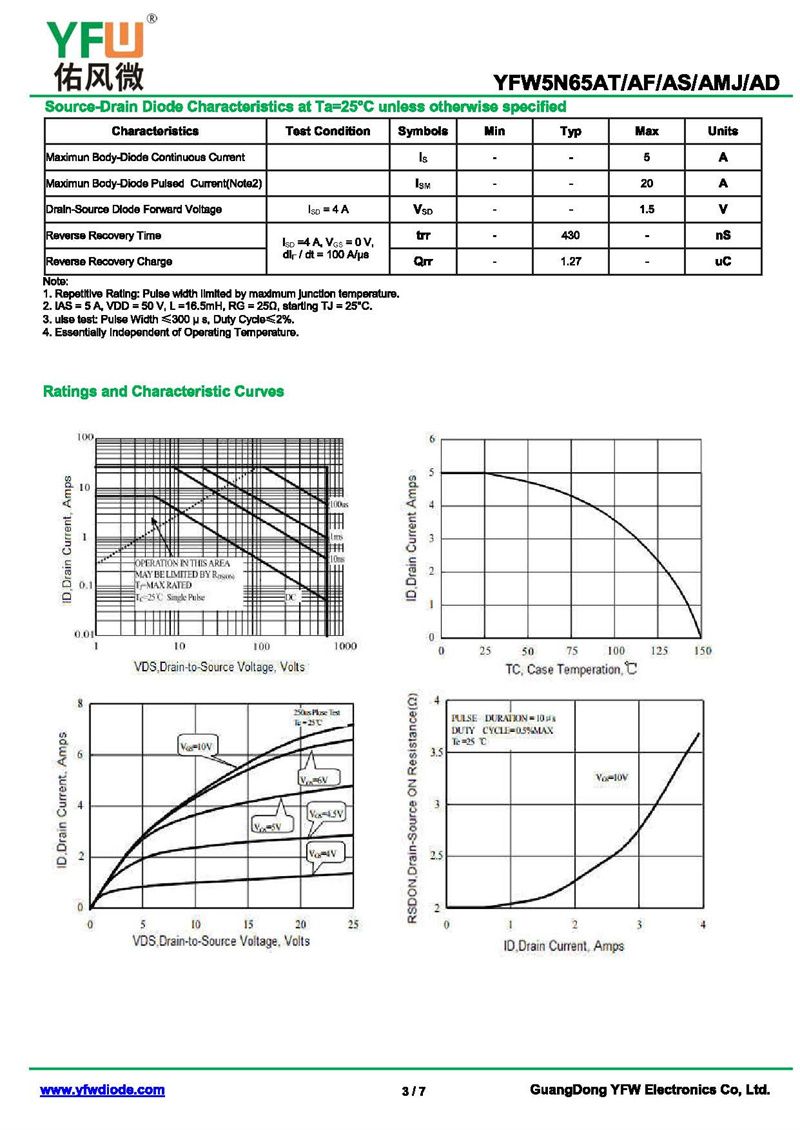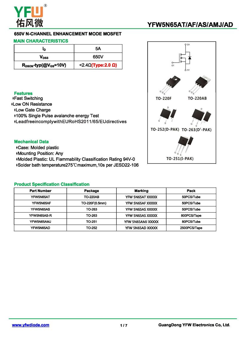 場效應管YFW5N65AS-R 規格書_價格_PDF手冊-廣東佑風微原廠YFW5N65AS-R TO-263_(YFW佑風微)品牌