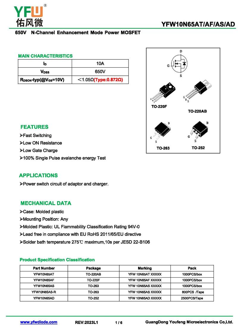 場效應管YFW10N65AS-R 規格書_價格_PDF手冊-廣東佑風微原廠YFW10N65AS-R TO-263_(YFW佑風微)品牌