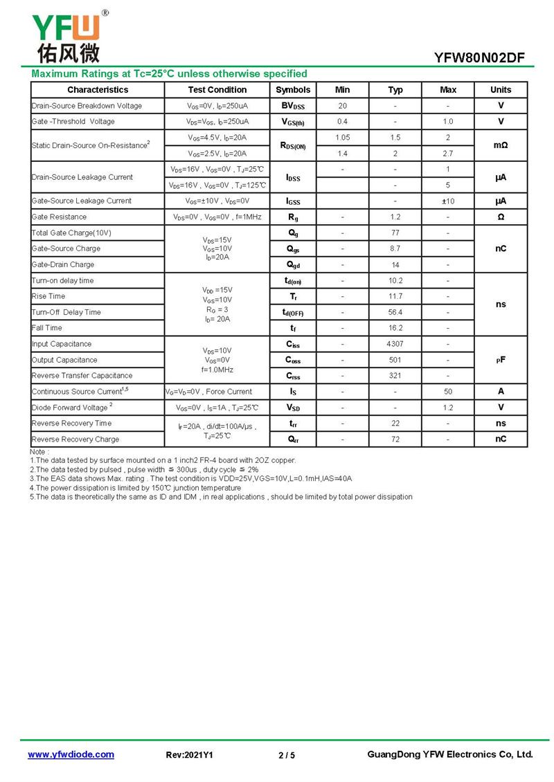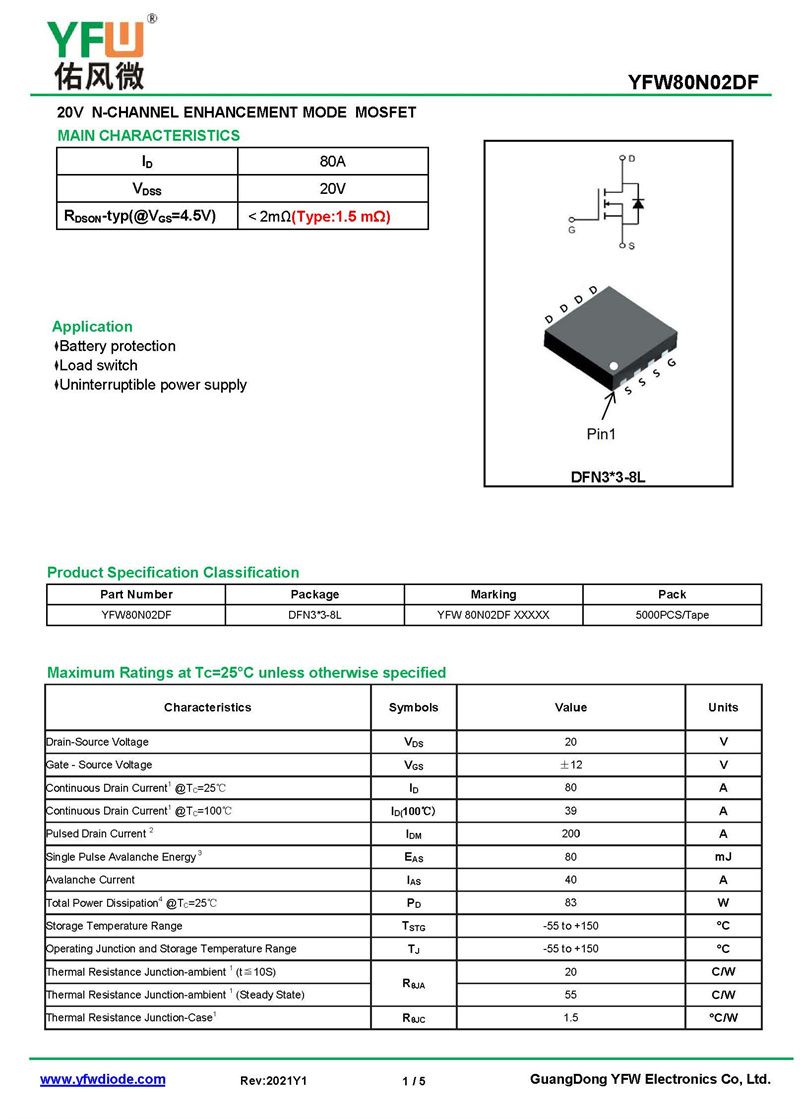 場效應(yīng)管YFW80N02DF 規(guī)格書_價(jià)格_PDF手冊(cè)-廣東佑風(fēng)微原廠YFW80N02DF DFN3*3-8L_(YFW佑風(fēng)微)品牌