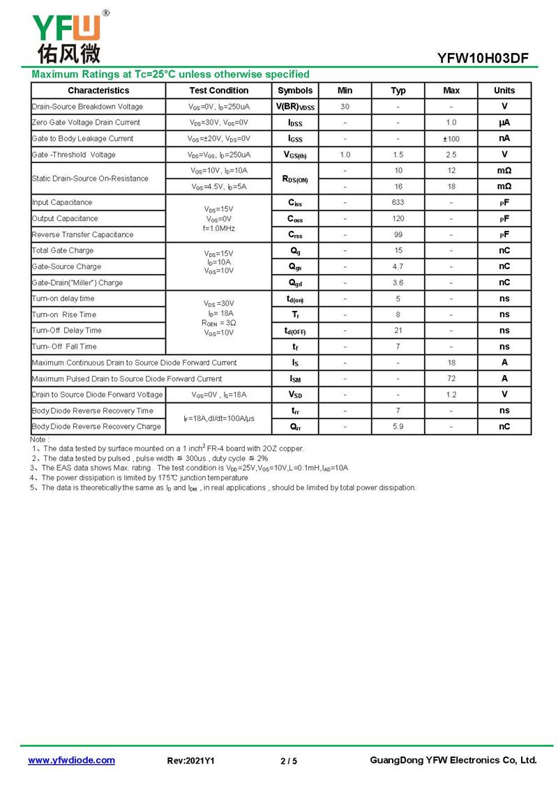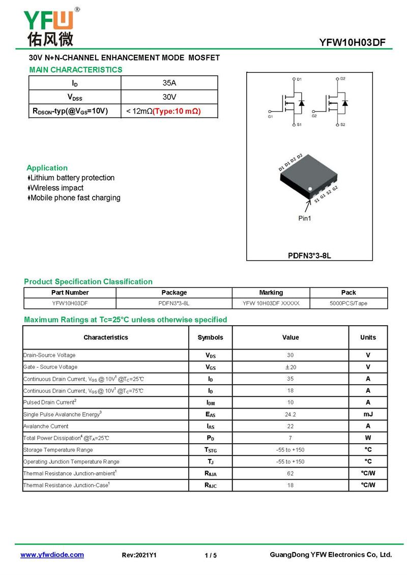 場效應管YFW10H03DF 規格書_價格_PDF手冊-廣東佑風微原廠YFW10H03DF PDFN3*3-8L_(YFW佑風微)品牌