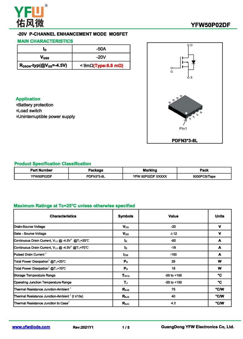 場(chǎng)效應(yīng)管YFW50P02DF 規(guī)格書(shū)_價(jià)格_PDF手冊(cè)-廣東佑風(fēng)微原廠YFW50P02DF PDFN3*3-8L_(YFW佑風(fēng)微)品牌