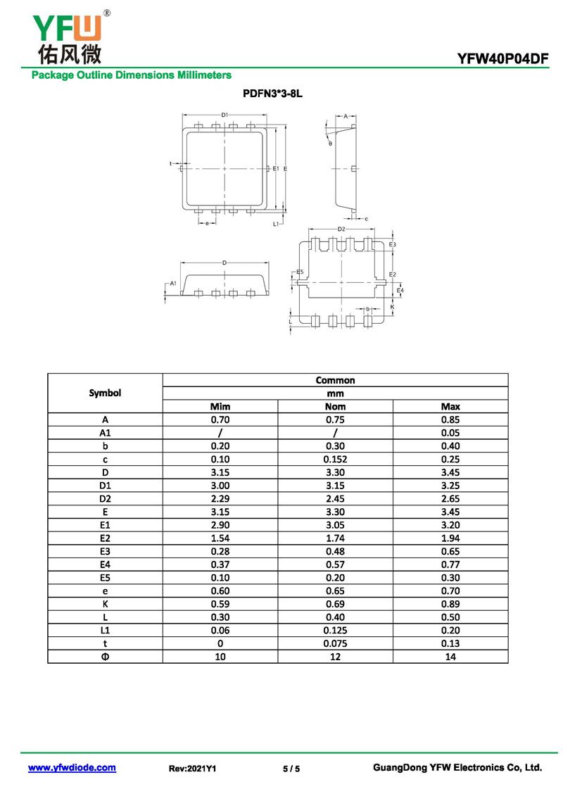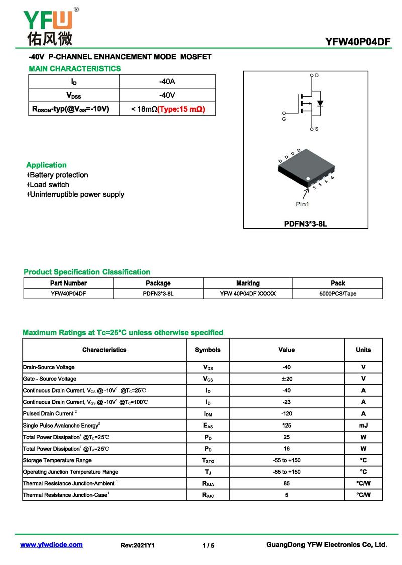 場效應管YFW40P04DF 規格書_價格_PDF手冊-廣東佑風微原廠YFW40P04DF PDFN3*3-8L_(YFW佑風微)品牌
