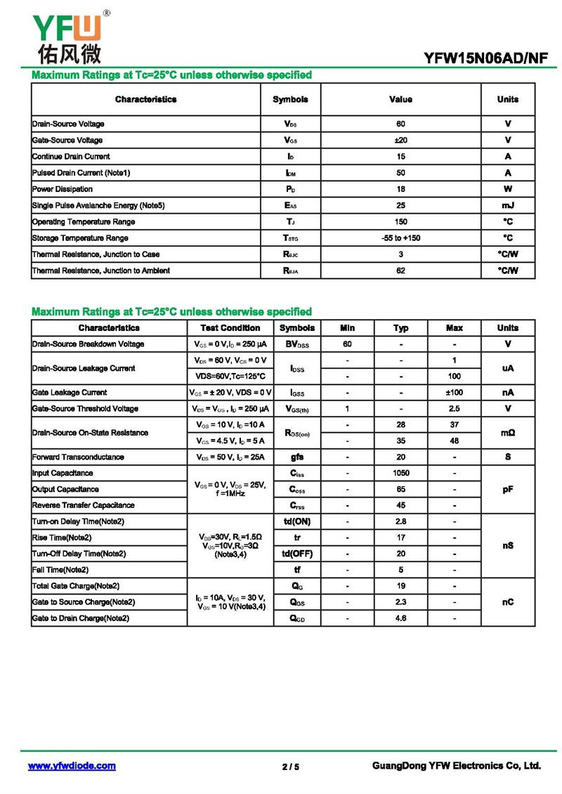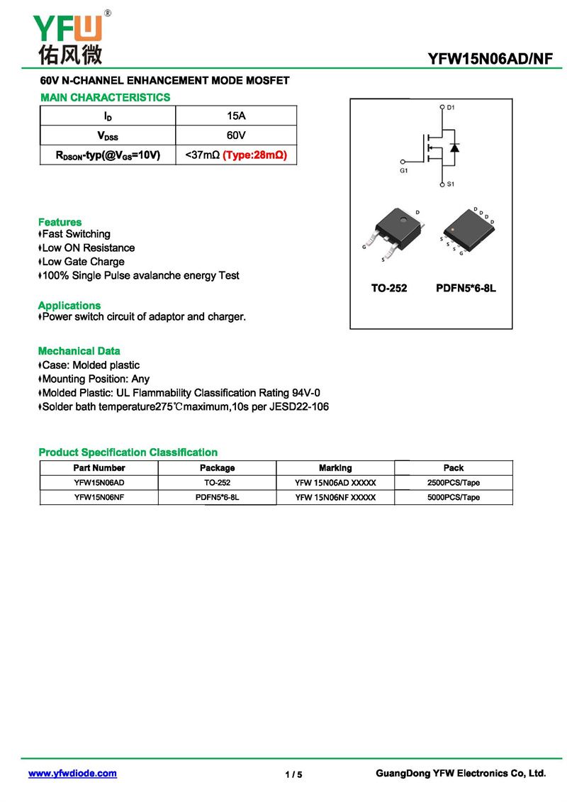 場效應(yīng)管YFW15N06NF 規(guī)格書_價格_PDF手冊-廣東佑風(fēng)微原廠YFW15N06NF PDFN5*6-8L_(YFW佑風(fēng)微)品牌