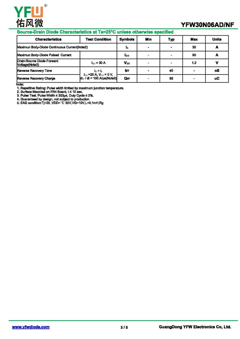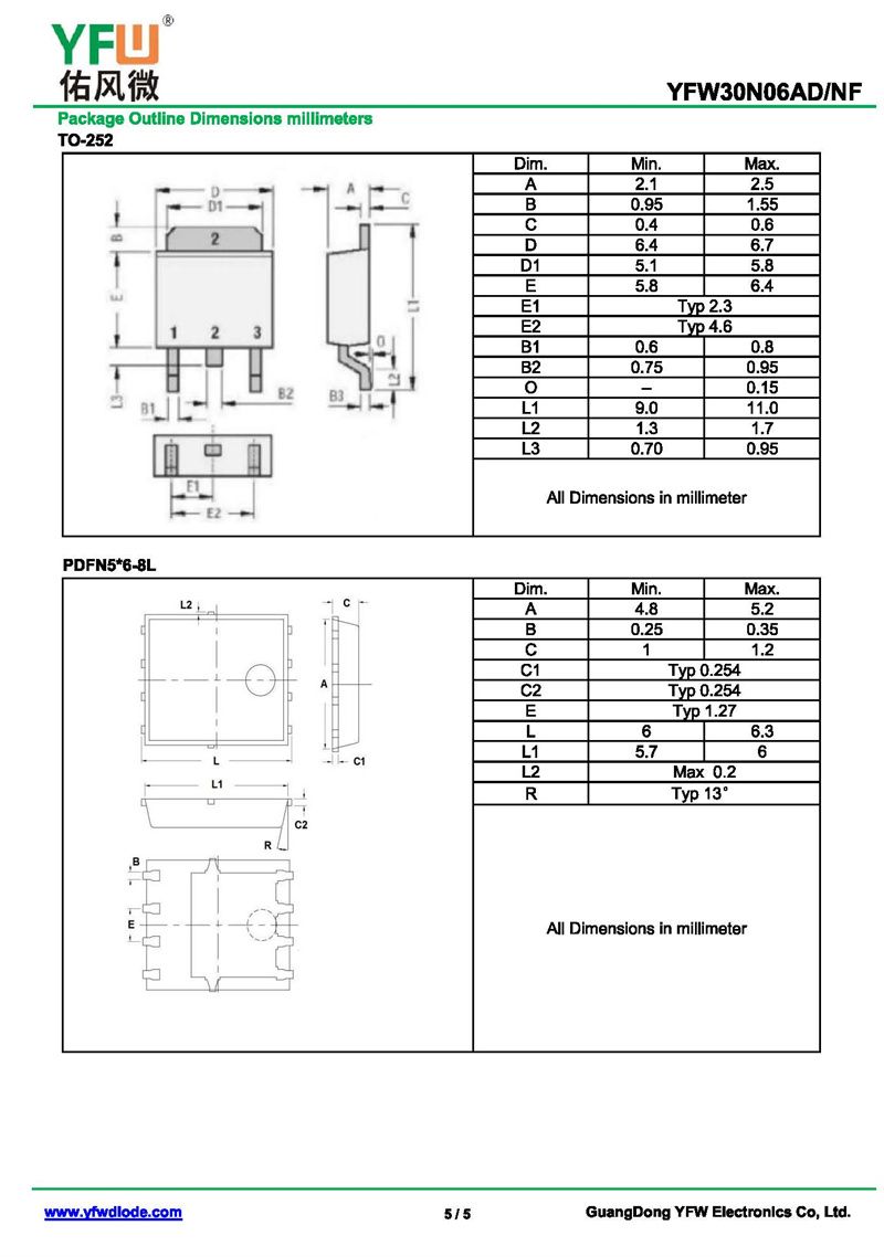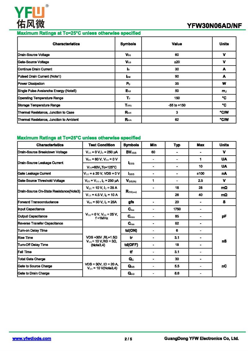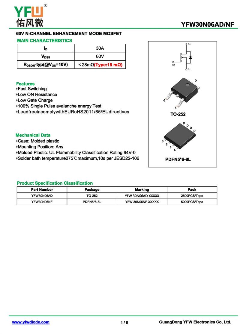 場效應管YFW30N06NF規格書_價格_PDF手冊-廣東佑風微原廠YFW30N06NF PDFN5*6-8L_(YFW佑風微)品牌