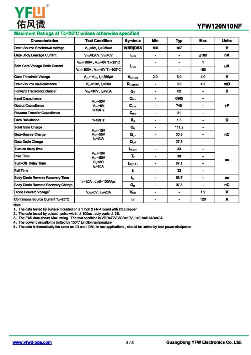 場效應(yīng)管YFW120N10NF 規(guī)格書_價格_PDF手冊-廣東佑風(fēng)微原廠YFW120N10NF PDFN5*6-8L_(YFW佑風(fēng)微)品牌