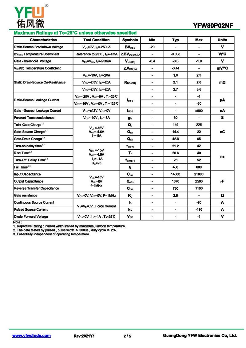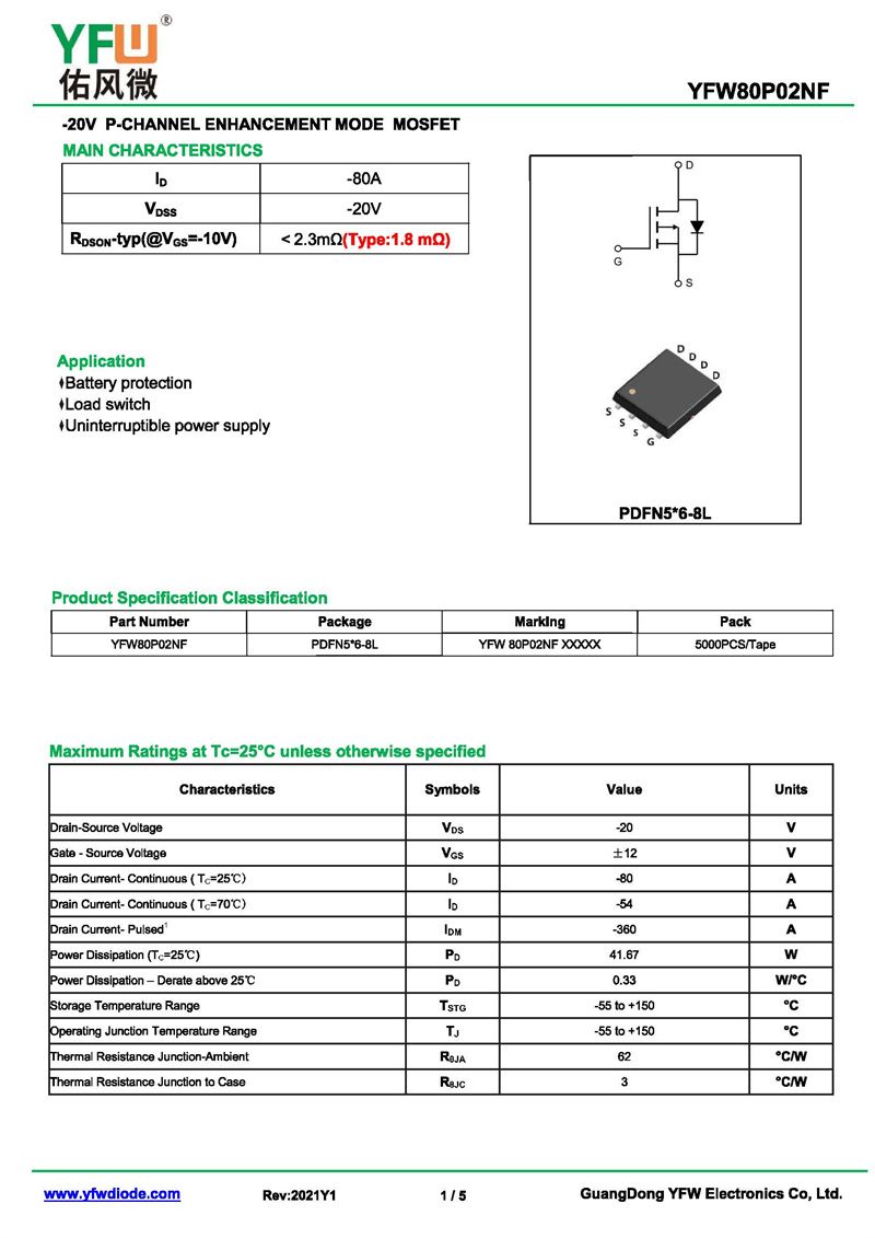 場效應管YFW80P02NF 規格書_價格_PDF手冊-廣東佑風微原廠YFW80P02NF PDFN5*6-8L_(YFW佑風微)品牌