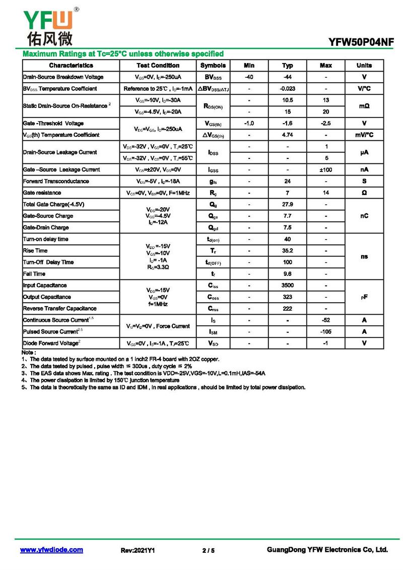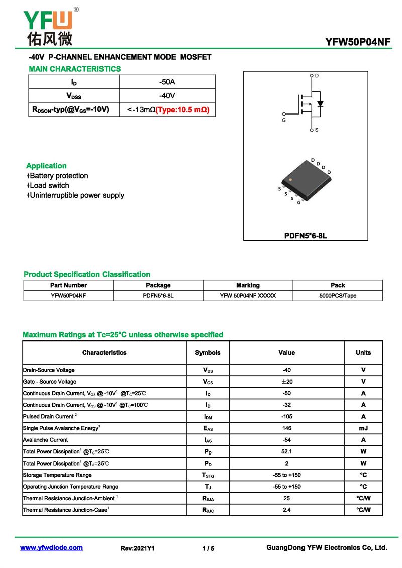 場效應管YFW50P04NF 規(guī)格書_價格_PDF手冊-廣東佑風微原廠YFW50P04NF PDFN5*6-8L_(YFW佑風微)品牌