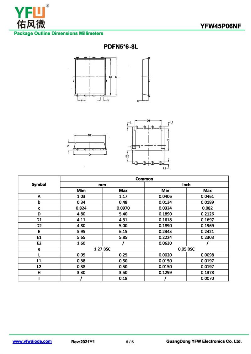 場效應管YFW45P06NF 規格書_價格_PDF手冊-廣東佑風微原廠YFW45P06NF PDFN5*6-8L_(YFW佑風微)品牌