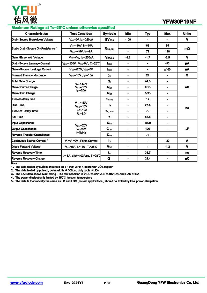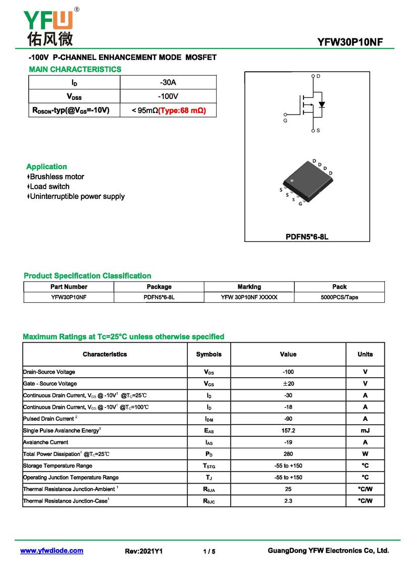 場效應管YFW30P10NF 規格書_價格_PDF手冊-廣東佑風微原廠YFW30P10NF PDFN5*6-8L_(YFW佑風微)品牌