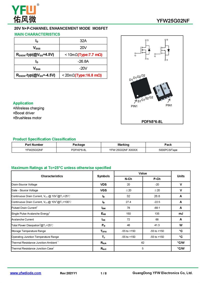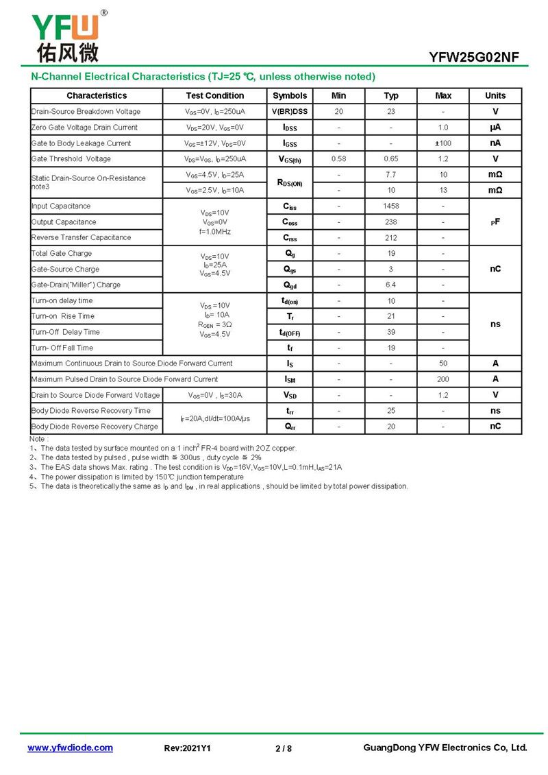場效應管YFW25G02NF 規格書_價格_PDF手冊-廣東佑風微原廠YFW25G02NF PDFN5*6-8L_(YFW佑風微)品牌