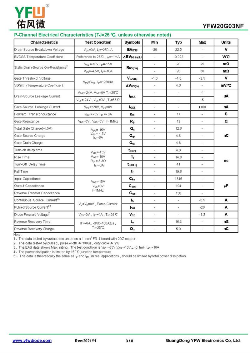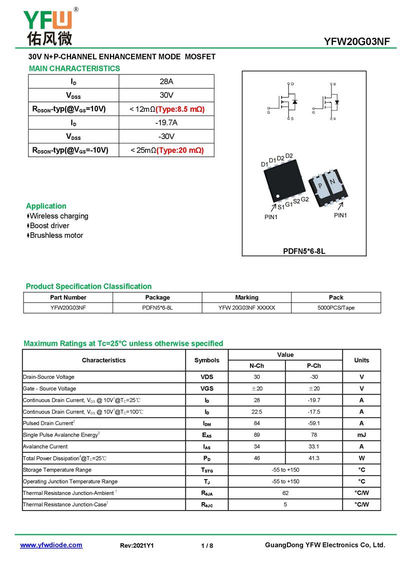 場效應管YFW20G03NF 規格書_價格_PDF手冊-廣東佑風微原廠YFW20G03NF PDFN5*6-8L_(YFW佑風微)品牌