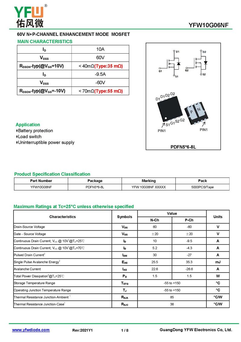 場效應管YFW10G06NF 規格書_價格_PDF手冊-廣東佑風微原廠YFW10G06NF PDFN5*6-8L_(YFW佑風微)品牌