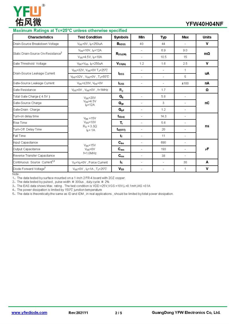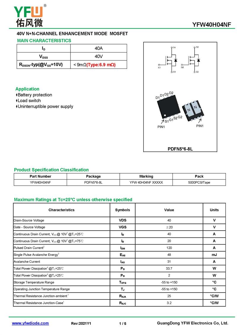 場效應管YFW40H04NF 規格書_價格_PDF手冊-廣東佑風微原廠YFW40H04NF PDFN5*6-8L_(YFW佑風微)品牌