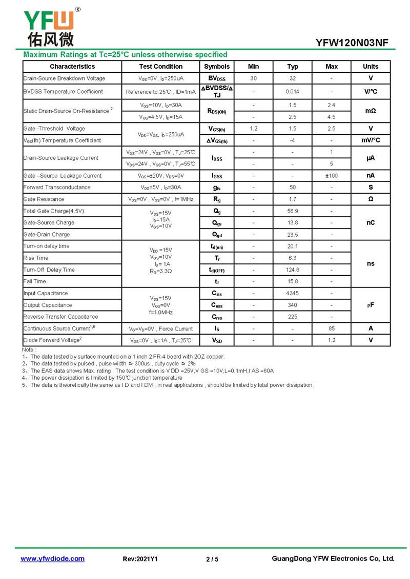 場效應管YFW120N03NF 規(guī)格書_價格_PDF手冊-廣東佑風微原廠YFW120N03NF PDFN5*6-8L_(YFW佑風微)品牌