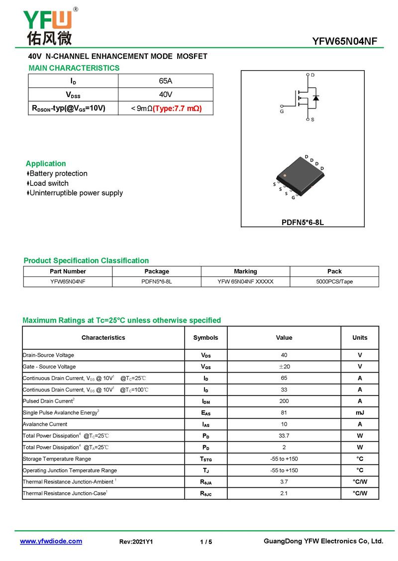 場效應(yīng)管YFW65N04NF 規(guī)格書_價格_PDF手冊-廣東佑風(fēng)微原廠YFW65N04NF PDFN5*6-8L_(YFW佑風(fēng)微)品牌