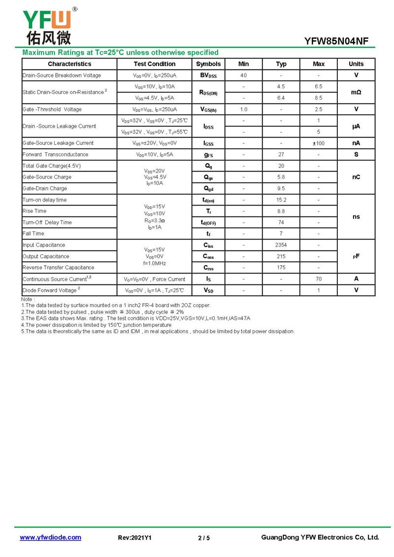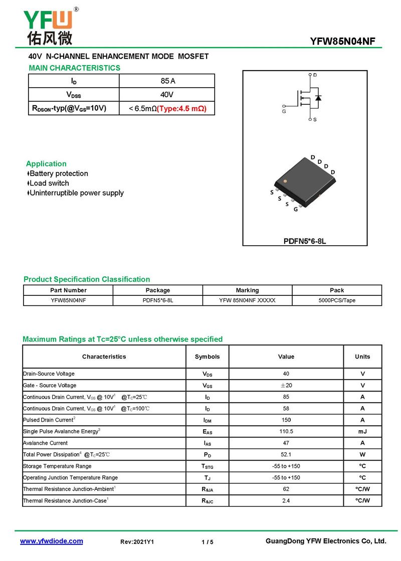 場(chǎng)效應(yīng)管YFW85N04NF 規(guī)格書_價(jià)格_PDF手冊(cè)-廣東佑風(fēng)微原廠YFW85N04NF PDFN5*6-8L_(YFW佑風(fēng)微)品牌