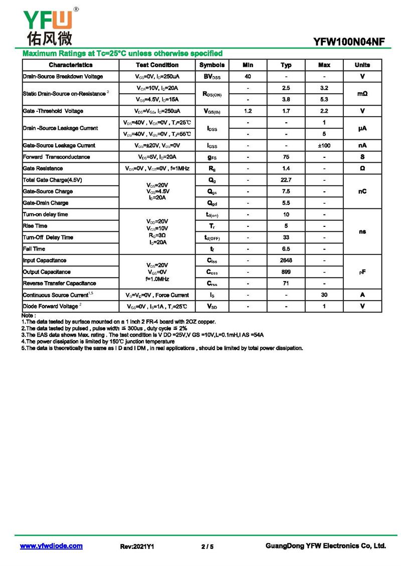場效應管YFW100N04NF 規格書_價格_PDF手冊-廣東佑風微原廠YFW100N04NF PDFN5*6-8L_(YFW佑風微)品牌