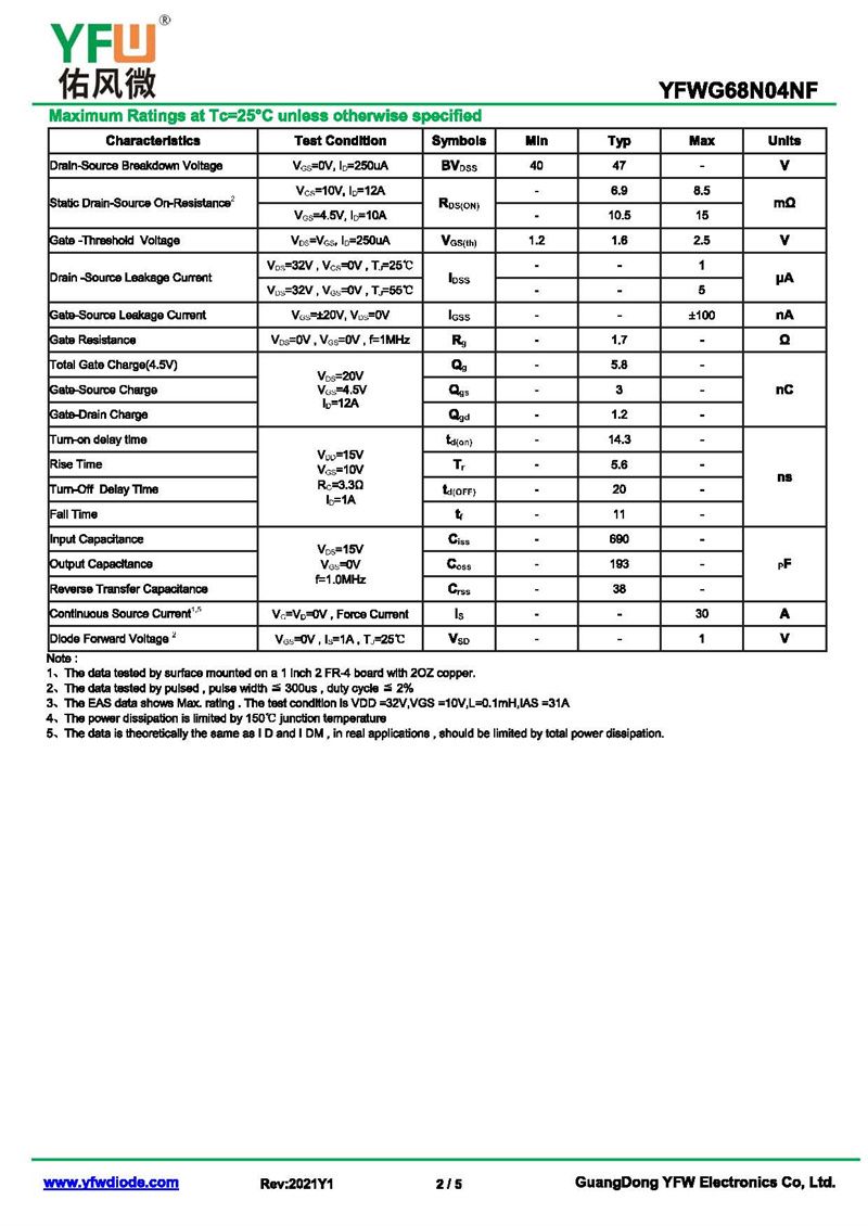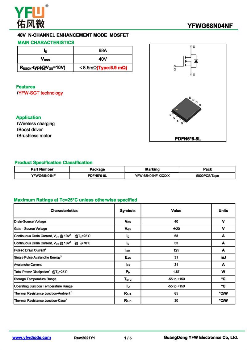 場效應管YFWG68N04NF 規格書_價格_PDF手冊-廣東佑風微原廠YFWG68N04NF PDFN5*6-8L_(YFW佑風微)品牌