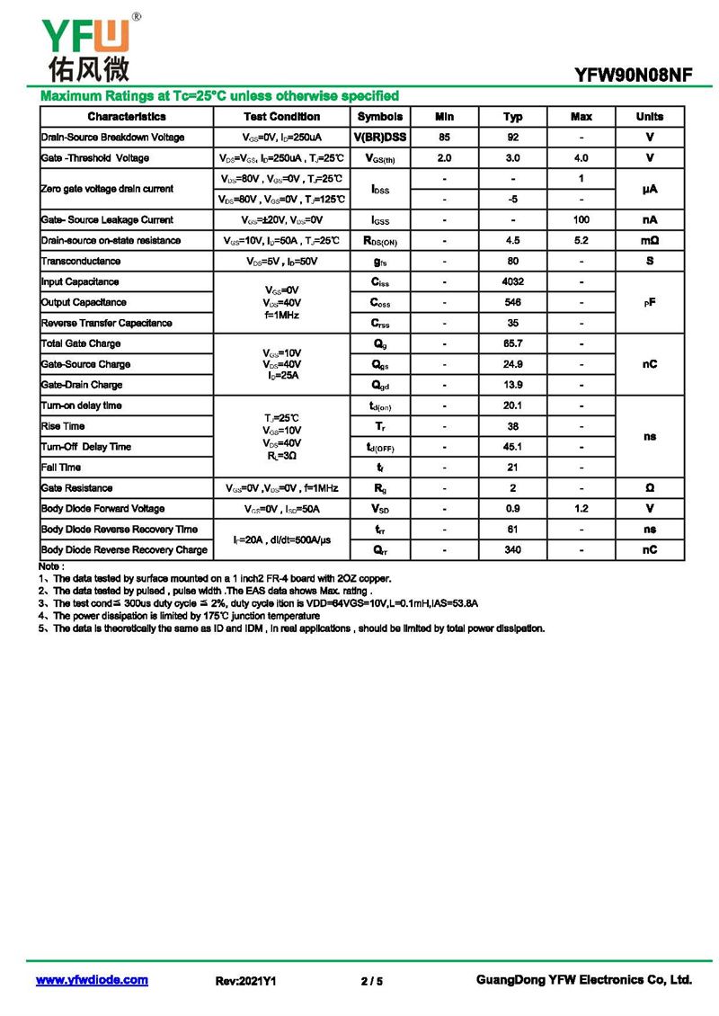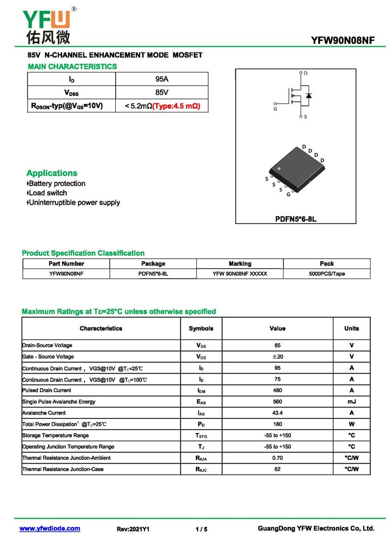 場效應管YFW90N08NF 規(guī)格書_價格_PDF手冊-廣東佑風微原廠YFW90N08NF PDFN5*6-8L_(YFW佑風微)品牌