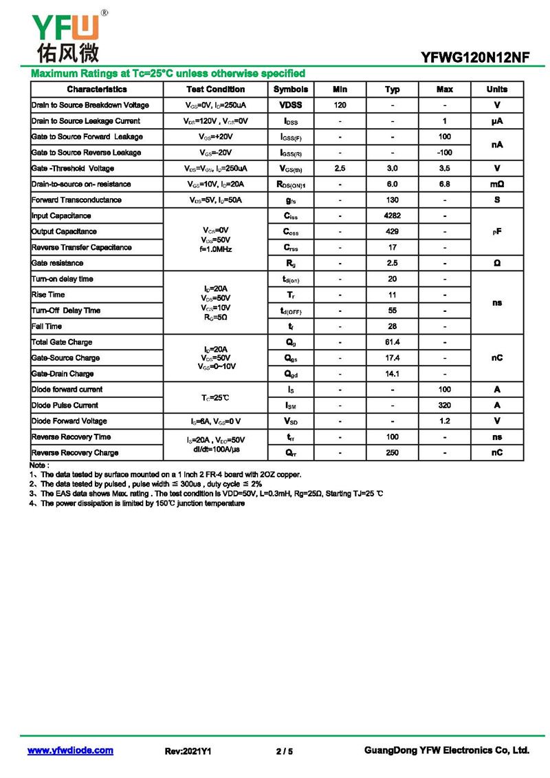 場效應(yīng)管YFWG120N12NF 規(guī)格書_價格_PDF手冊-廣東佑風微原廠YFWG120N12NF PDFN5*6-8L_(YFW佑風微)品牌